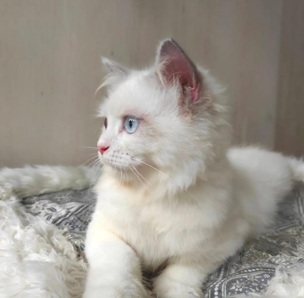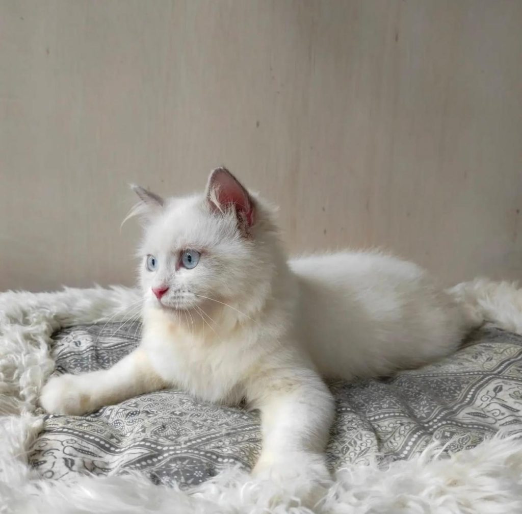 Meet Mimi, Mimi, the 6 months old Ragdoll, is the embodiment of elegance and mystery. With her striking blue eyes