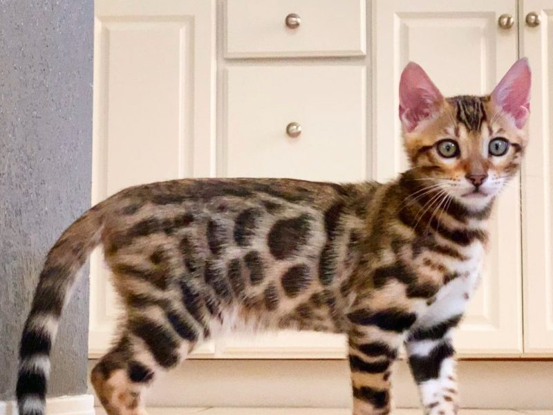 Marco is a majestic Bengal kitten who exudes the wild charm of his breed. He’s a total sweetheart once you earn his trust.