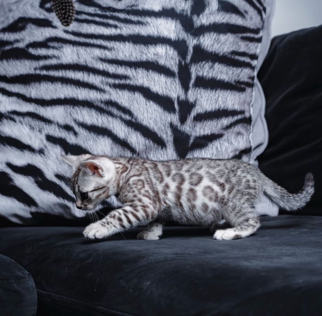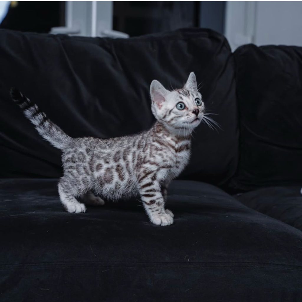 This kitten is 3 months old. He loves playing and he does great with all other cats, dogs, and people (especially children). He is such a gentle sweet kitty who is a little shy at first, but very quickly warms up to you. He is very playful, has the most joyous demeanor and would make a wonderful addition to any family.